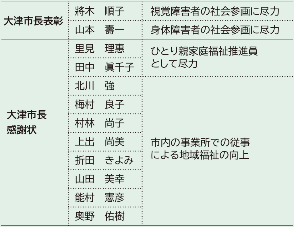 11月20日に生涯学習センターで行った大津市表彰式で、75人・11団体を表彰しました。