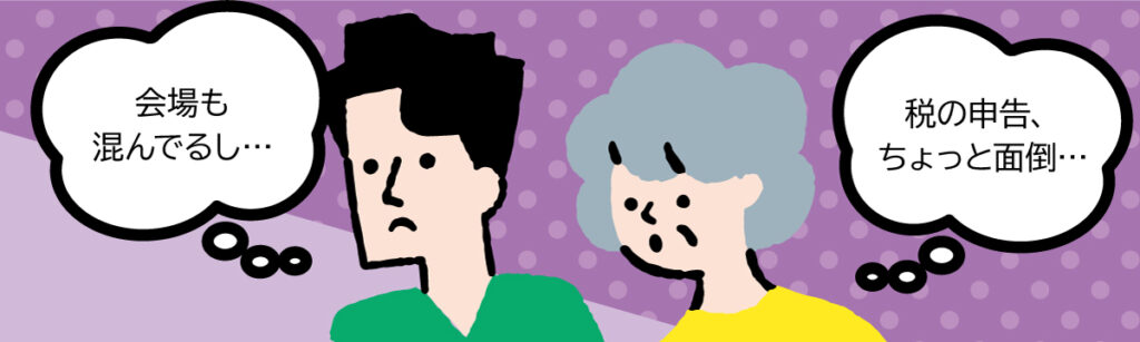 会場は混み合うので、待ち時間のないe-Taxがおすすめです。令和6年では全国で4人に3人が利用しています。また、令和8年申告から、市民税・県民税も「eLTAX」でスマホやパソコンから申告できるように。ぜひご利用ください!