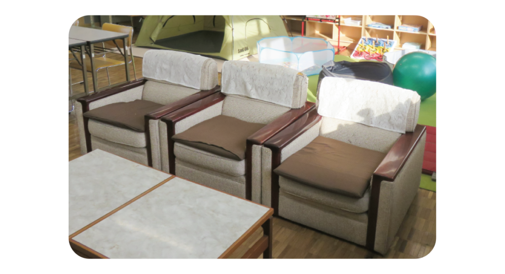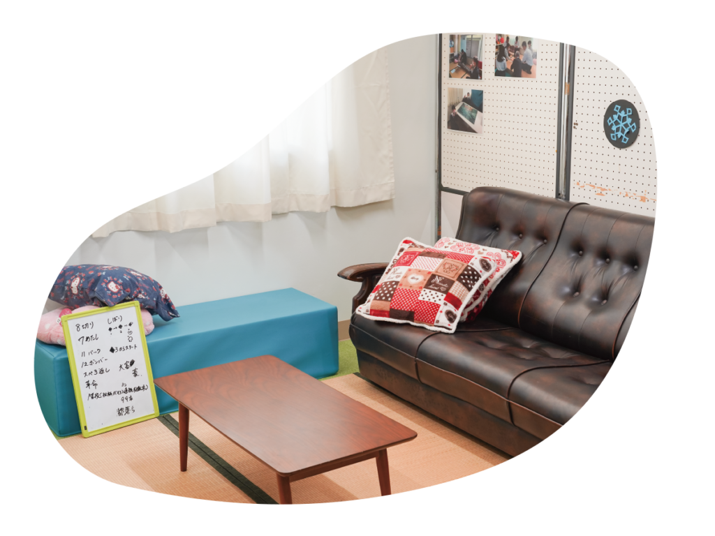 教室へ入るのが少し不安なときや気が重いときは、ソファなどでリラックスして過ごしています。焦らず心を落ち着けることで、次の一歩を踏み出すことができます。