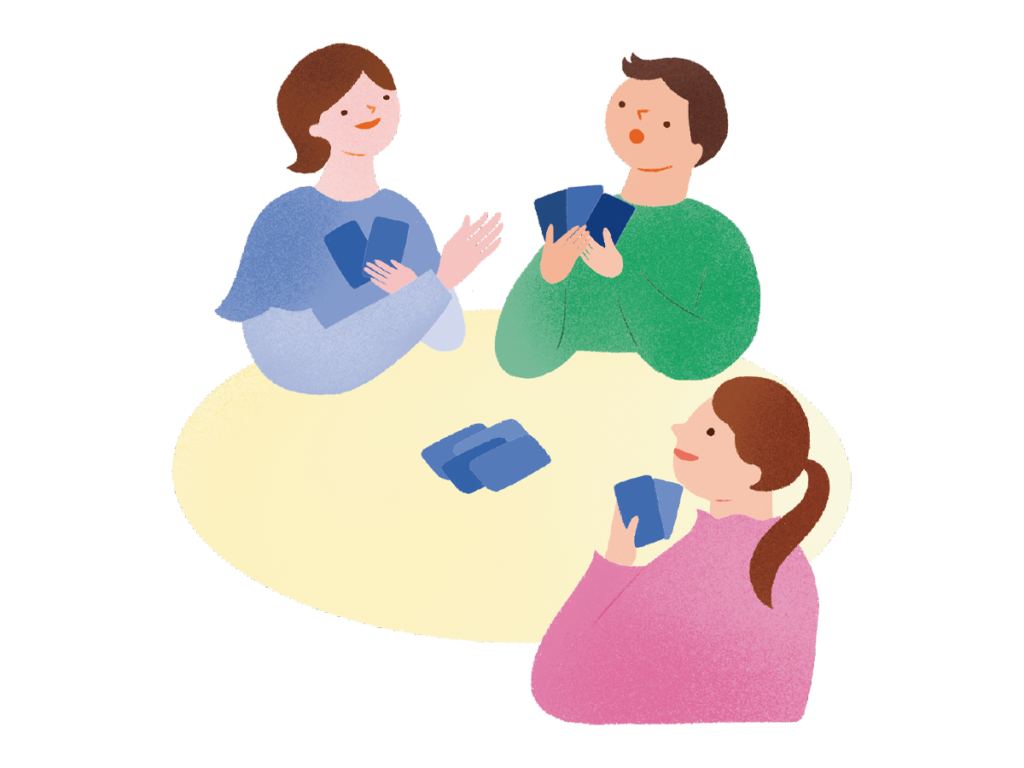 信頼できる仲間とのゲームやおしゃべり。リラックスして、心をほぐす温かい時間です。