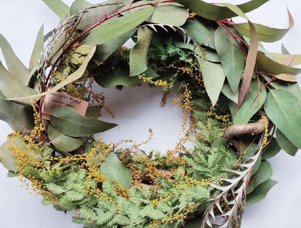 畑中晴文先生のミモザリース作り