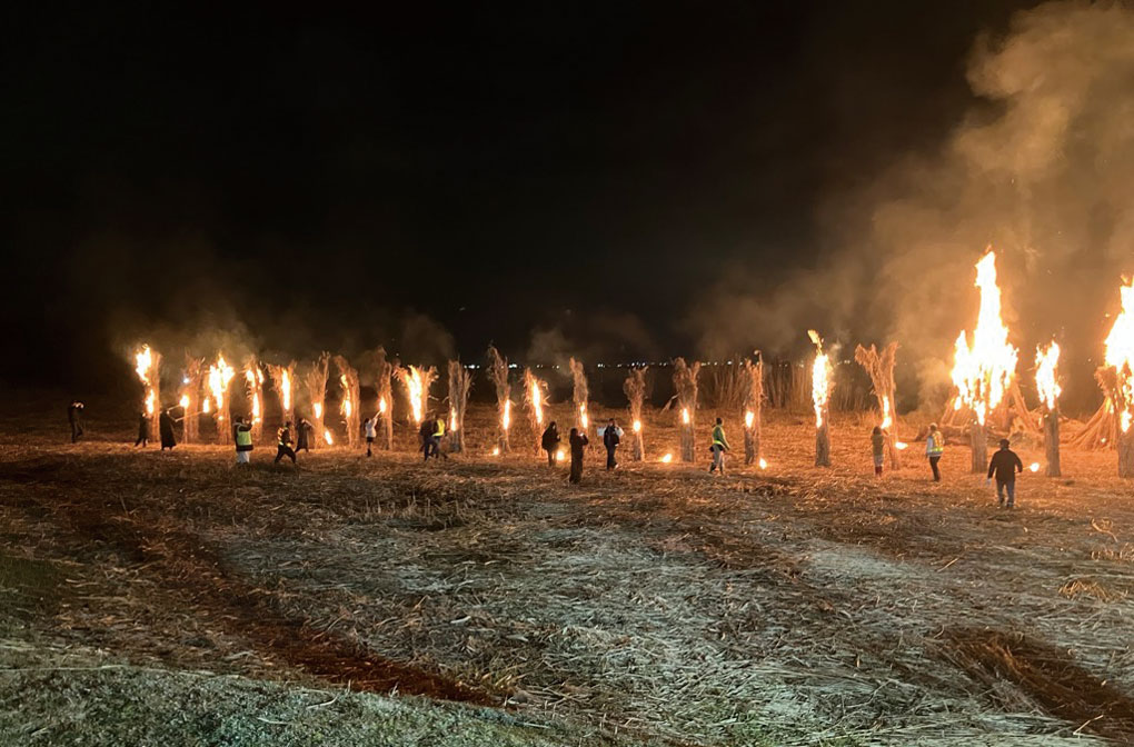 春を呼ぶ ヨシたいまつ点火