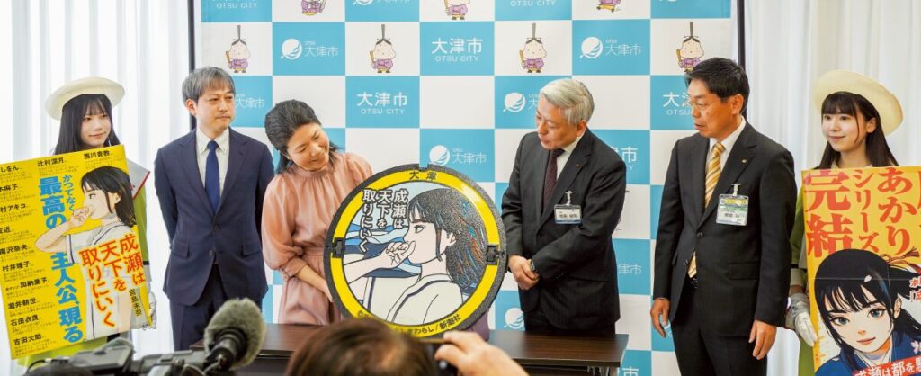 大津市在住の作家・宮島未奈先生の「成瀬」シリーズ完結を記念し、主人公・成瀬あかりを描いたマンホールが京阪膳所駅前に設置されました!