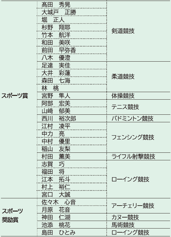 大津市スポーツ賞(第79回国民スポーツ大会・第24回全国障害者スポーツ大会)を表彰しました スポーツ2026.02.19 2月16日にびわ湖大津プリンスホテルで行われた大津市スポーツ賞表彰式で、昨年滋賀県で開催された「第79回国民スポーツ大会・第24回全国障害者スポーツ大会」において優勝された42人を表彰しました。※表彰人数は、氏名等の記載を希望されなかった方も含む。※敬称略。 第79回国民スポーツ大会 第24回全国障害者スポーツ大会 詳しくは、市ホームページへ。 この記事に関するお問い合わせ先 スポーツ課 TEL:077-528-2637 この記事の関連タグ 2026年3月号 おおつタイムス 友だちや家族に教える ポストする LINEで送るURLをコピーするコピーしました おすすめの関連記事 「びわ湖マラソン2026」交通規制にご協力をお願いします スポーツ 2026.02.19 後期高齢者医療制度からのご案内 健康・福祉 2026.02.19 子ども医療等の福祉医療費受給券を発送します 健康・福祉 2026.02.19 自転車の交通ルールが変わります くらし 2026.02.19 勤労福祉センター スポーツ 2026.02.19 前の記事 次の記事