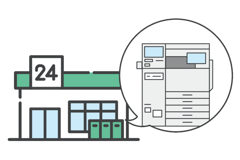電子証明書が有効なマイナンバーカードがあれば、全国のコンビニエンスストアなど、店内に証明書が発行できる多機能端末(マルチコピー機)を設置している店舗で証明書を窓口よりお得で便利に取得できます。
