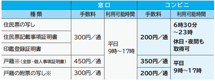 受付場所/戸籍住民課(本館1階)または各支所(土日祝日・年末年始を除く9時~17時)
